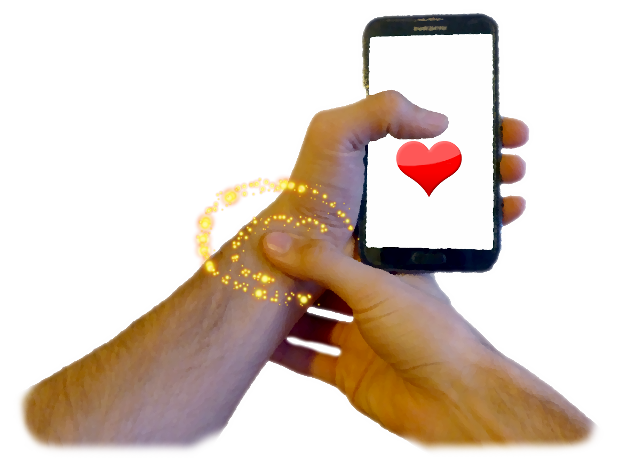1) Возьмите телефон в руку другой рукой нащупайте пульс на запястье.